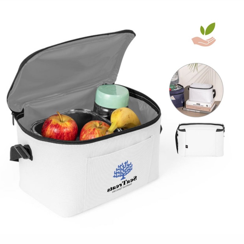 Feita em poliéster reciclado 600D, esta bolsa térmica personalizada une sustentabilidade, resistência e funcionalidade. Com alça ajustável em webbing, proporciona conforto no transporte enquanto seu compartimento principal espaçoso e bolso frontal oferecem organização prática para alimentos e bebidas. O interior forrado em PEVA garante excelente isolamento térmico, mantendo seus itens frescos por mais tempo, ideal para o uso diário, passeios, trabalho ou lazer.