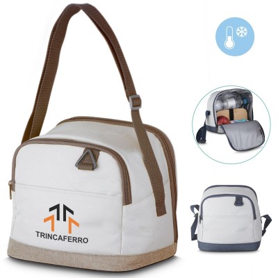 A bolsa térmica em tecido poliéster 600D é um brinde corporativo robusto e prático, ideal para ações promocionais que valorizam durabilidade, funcionalidade e boa visibilidade da marca. Produzida em material resistente e com excelente acabamento, ela é perfeita para o dia a dia seja no trabalho, em passeios, viagens curtas ou momentos de lazer. Seu design moderno inclui dois acessos ao compartimento interno, facilitando o manuseio de alimentos e bebidas. A parte interna é costurada, garantindo um isolamento térmico mais eficiente e reforçando a qualidade do produto. A alça de ombro possui regulagem para maior conforto no transporte, adaptando-se ao estilo de cada pessoa.