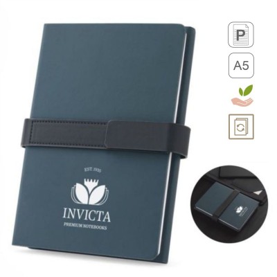 Ideal para feiras, eventos e campanhas publicitárias. O caderno A5 é a combinação perfeita entre design moderno e praticidade, desenvolvido para acompanhar a rotina de trabalho de forma sustentável. Com capa dura feita de 80% de materiais reciclados (PU reciclado e poliéster reciclado), ele se destaca pela sua estrutura funcional