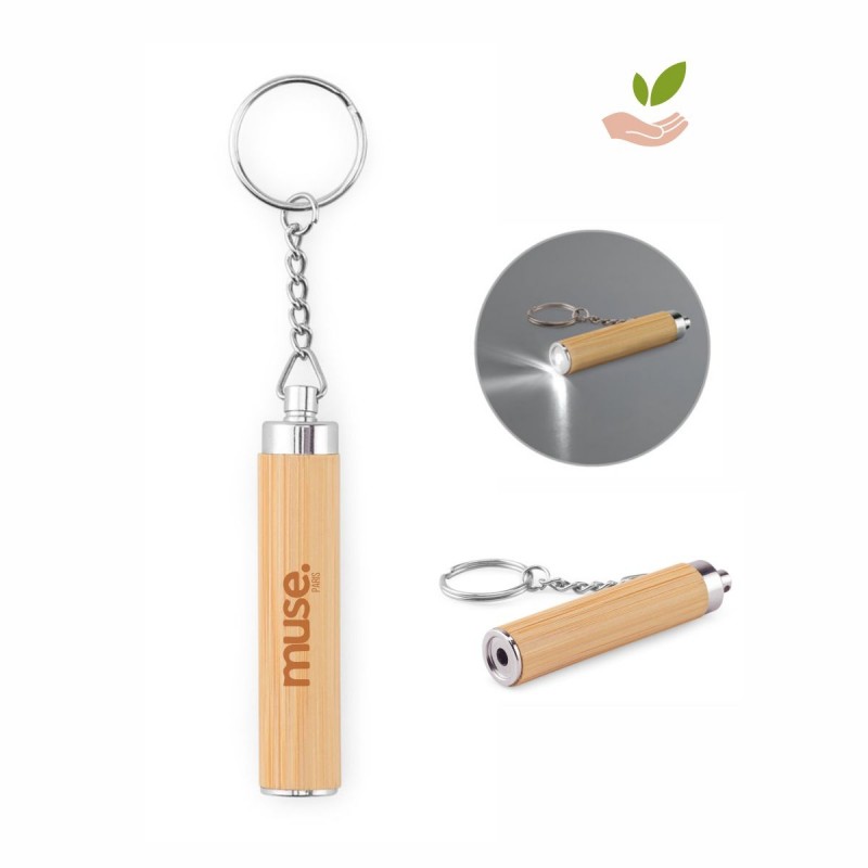 O chaveiro em bambu com lanterna LED é uma excelente opção para campanhas que desejam aliar utilidade e sustentabilidade. Fabricado em bambu natural com detalhes em ABS, este chaveiro conta com uma lanterna LED de alta eficiência, ideal para situações do dia a dia, como procurar itens em bolsas ou usar em locais com pouca iluminação. Compacto e leve, já vem com três pilhas LR41 inclusas, pronto para uso imediato. A combinação de materiais naturais com tecnologia cria um visual moderno e consciente, ideal para empresas que desejam transmitir valores sustentáveis em seus brindes.