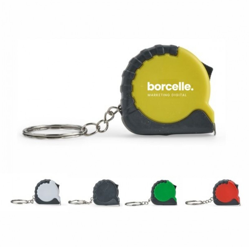 Um chaveiro trena de plástico é ideal para gosta de tudo sob medida. Sua fita de aço tem o alcance de até 1 metro, além de apresentar suas medidas em pés e polegadas, o que a torna um item versátil para fazer medições mais simples no dia a dia. Conta ainda com uma trava de segurança de fácil acionamento: basta deslizar que a fita é contida totalmente no trecho desejado, além de uma argola de metal para encaixar chaves ou conectar a outro chaveiro.