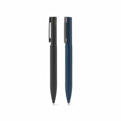 Perfeita para eventos corporativos, brindes exclusivos e campanhas promocionais de impacto. Esta esferográfica elegante é fabricada em metal 60% reciclado, equipada com clipe prático e mecanismo twist para fácil manuseio. Com escrita azul e alcance de até 1,5 km