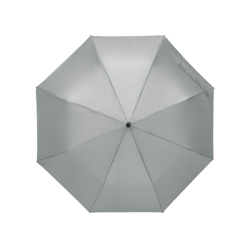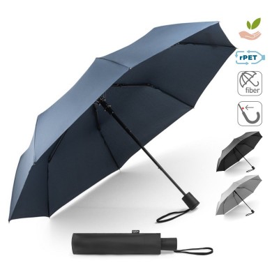 O guarda-chuva dobrável em poliéster 100% reciclado 190T pongee com pega em PP é um brinde corporativo sustentável e funcional, ideal para ações promocionais que valorizam a praticidade e o respeito ao meio ambiente. Produzido com tecido reciclado de alta qualidade, oferece resistência à chuva e durabilidade no uso diário. Suas varetas em fibra de vidro proporcionam flexibilidade e maior resistência ao vento, enquanto a pega em PP garante conforto durante o manuseio. O design dobrável em três seções facilita o transporte e o armazenamento, tornando-o um item compacto para levar a qualquer lugar. A abertura automática oferece rapidez e facilidade no momento de abrir o guarda-chuva.