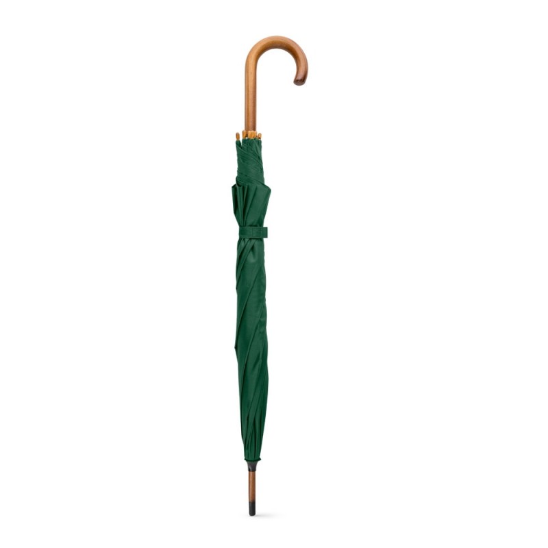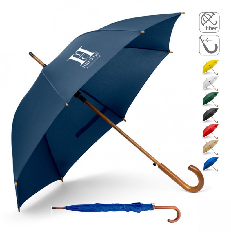 O guarda-chuva em poliéster pongee 190T com haste e pega em madeira é um brinde corporativo de alto valor percebido, ideal para ações promocionais que buscam elegância, funcionalidade e impacto visual. Com design clássico e acabamento sofisticado, ele transmite tradição e bom gosto, tornando-se uma excelente escolha para presentear clientes, parceiros e colaboradores em ocasiões especiais. A estrutura combina resistência e durabilidade com suas varetas em fibra de vidro, que proporcionam maior flexibilidade e segurança mesmo em dias de vento.