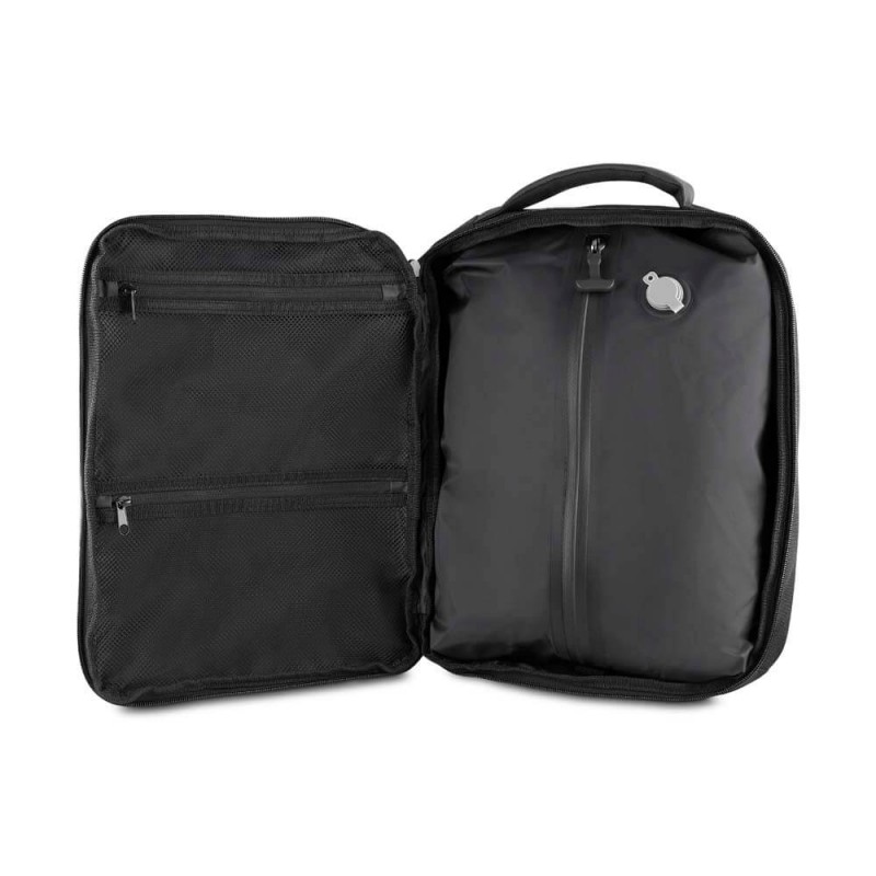 A Mochila Premium com Vácuo é confeccionada em poliéster 600D com detalhes em PU, sendo a escolha ideal para profissionais em constante movimento. Seu grande diferencial é o exclusivo compartimento interno a vácuo com bomba de sucção inclusa, além de um zíper expansor que altera sua capacidade para até 26 Litros. Com compartimento acolchoado para notebook de até 15,6", bolso antifurto nas costas e engate para malas de viagem, ela substitui facilmente uma mala de bordo extra. Este modelo tecnológico é perfeito para uso corporativo em viagens de curta duração e uma excelente opção de brinde personalizado premium para executivos . Sua funcionalidade inovadora faz dela o presente ideal para ações de marketing, eventos corporativos e campanhas de incentivo em multinacionais.