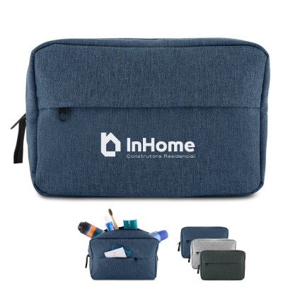 A nécessaire em poliéster 300D é um brinde corporativo prático e versátil, ideal para ações promocionais, eventos, campanhas sazonais ou compor kits personalizados com foco em organização e mobilidade. Produzida em poliéster 300D, um material resistente e de toque agradável, ela garante durabilidade e ótimo acabamento. Conta com um compartimento principal de bom espaço interno para itens de higiene, maquiagem, acessórios ou materiais de uso diário, além de um bolso frontal com zíper para pequenos objetos que precisam de acesso rápido. A alça lateral facilita o transporte e o uso em diferentes situações, como viagens, academia ou no dia a dia.